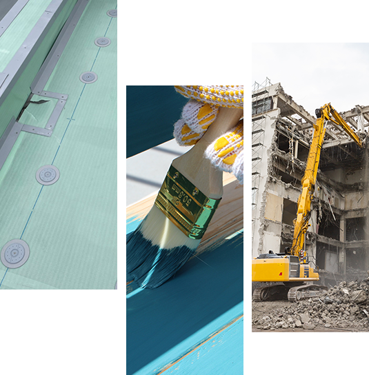 解体工事も承っております。 木造建物・鉄骨建物の解体はもちろん、RC解体・内装解体にも対応可能です。 また、斫り工事やアスベスト除去もお任せください。
